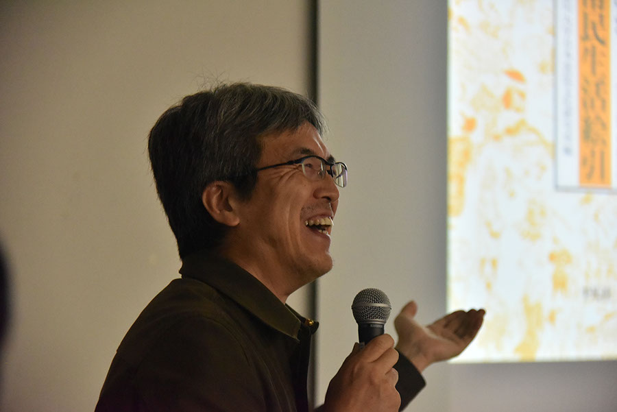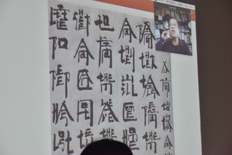 編集デザインの池田美奈子先生によるアーカイブの基本概念と諸問題を共有するレクチャーに続いて、編集者の古賀弘幸さんから文字のアーカイブ性についての話題提供がありました。文字と書にはテキストに還元できない様々な様相が潜んでいること、つまり書そのものが、身ぶりや呼吸などが折りたたまれた「拡張されたアーカイブ」とみなせるとのお話でした。