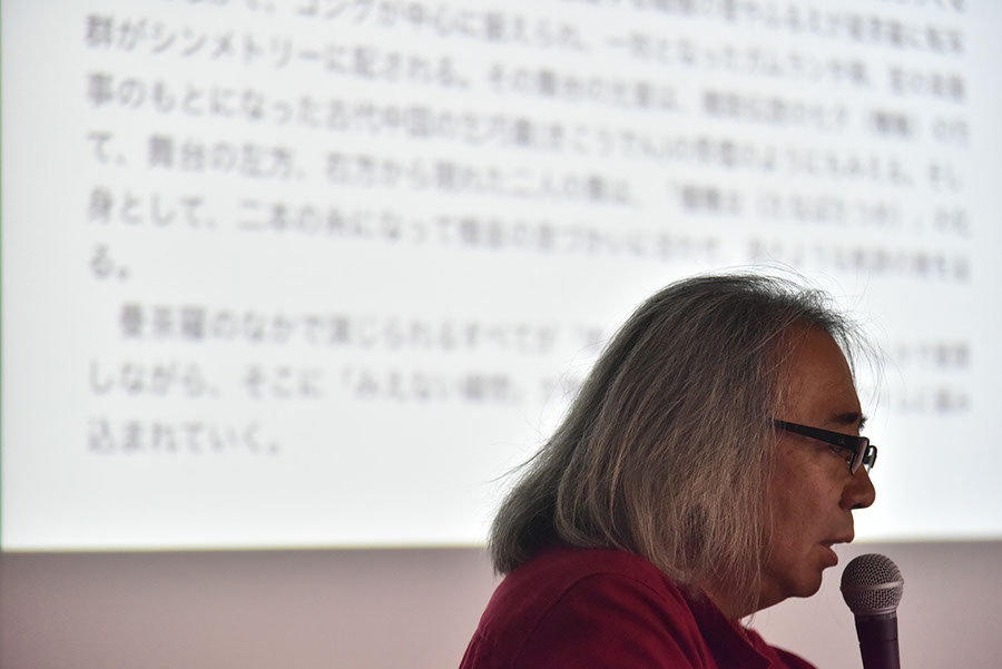 その後は、ソーシャルアートラボが企画している現代舞楽「織・曼荼羅〜博多織の機音による〜」(藤枝守作曲・演出)という作品のもつアーカイブ性と、そのパフォーマンス自体をどうアーカイブできるかを皆で検討しました。
