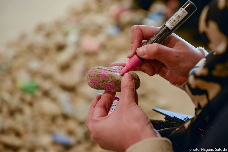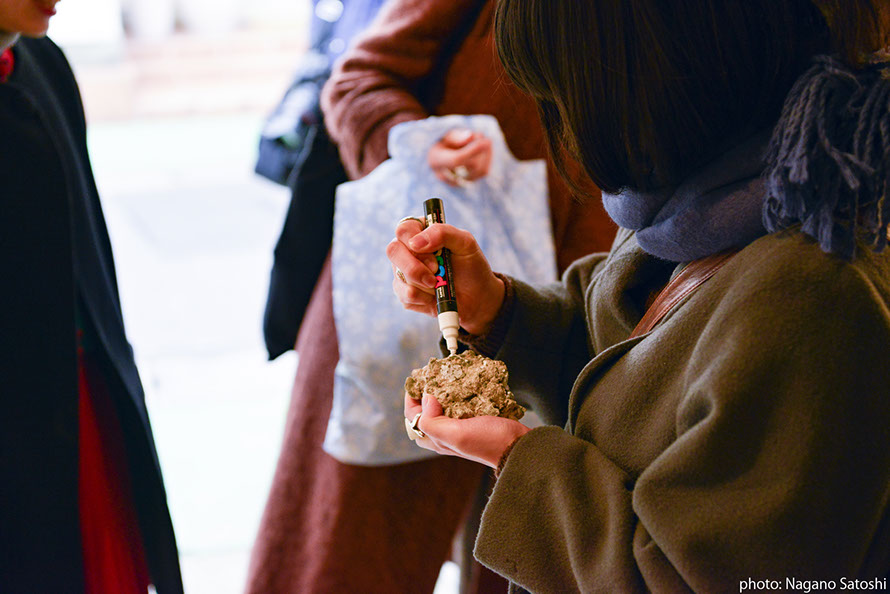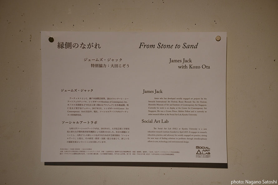 「石から砂へ」というメタファーを用いながら、二つの場所の間にある時間と空間を想起し、「ながれ」 について思いを巡らす参加型展示を実施しました。福岡と八女という一見異なる二つの場所について、日常を織りなすさまざまなレイヤー(層)に目を向け、両者のつながりを浮かびあがらせました。