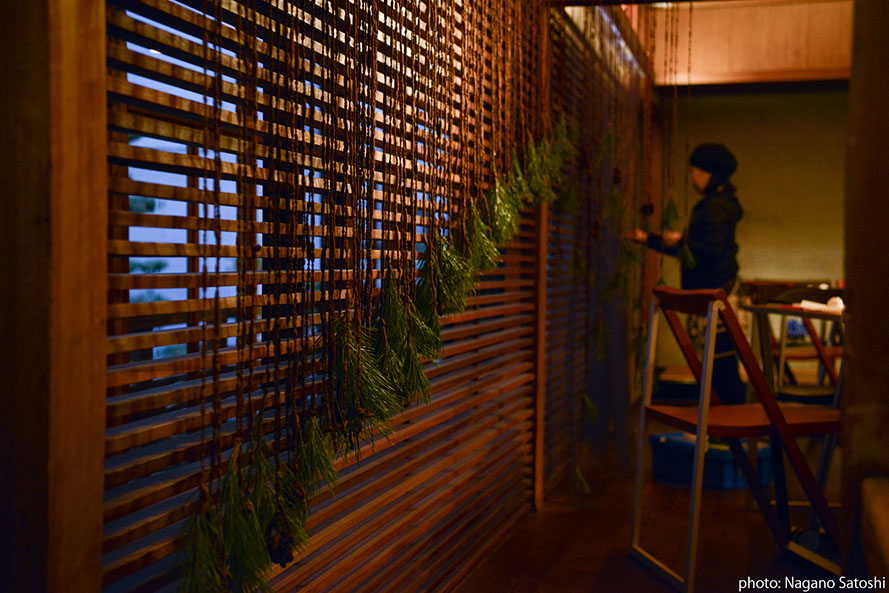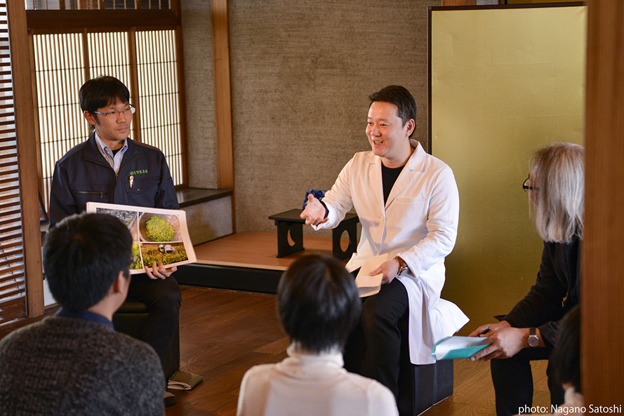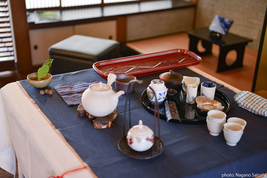 大名の一角に佇む昭和初期の民家「松楠居」を「家」、古民家を改築したギャラリー「エンジョイスペース大名」を「縁側」、八女の物産館「八女本舗」を「庭」と見立て、大名に八女が浮かび上がる如月のひと時をつくり出しました。ゆったりと芸に興じる茶三昧から、石を通じて八女の過去と未来に想いを馳せる参加型展示、八女の物産に新しい方向から光を投じる試みによって、人と人、人と物事が新しい方法で出会い、結ばれる仕掛けをほどこしました。