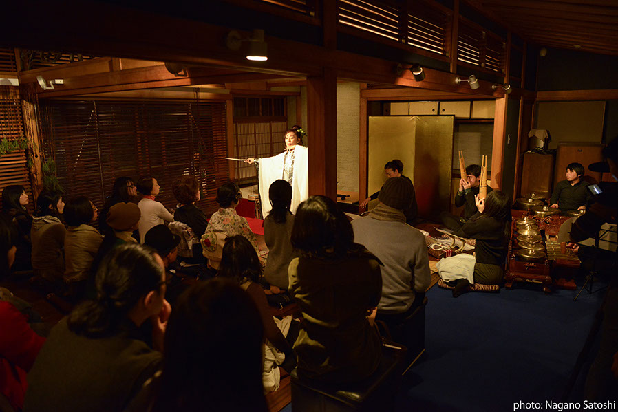 松楠居を舞台に繰り広げられた茶の三日間。「茶をかたる」というトーク・シリーズをはじめ、「闘茶」という参加型ワークショップや「茶を弾じる」という筑前琵琶のライブ、そして、八女の茶の電位変化にもとづく《茶の植物文様》がクラヴィコードによって演奏されました。さらに、月を愛でながらの箏歌《月読三歌》に引き続き、「十六夜の夜想茶会」というパフォーマンスでは、笙やガムランの響きのなかで茶事を取り入れた耽美な月読の時間が展開していきました。