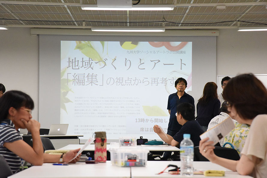 地域におけるアートプロジェクトを再考し、成功へ導くためのノウハウを身に付ける場として、「地域づくりとアート:『編集』の視点から再考する」と題した2日連続講座を2回実施しました。ここでは「編集」という言葉を、リサーチ+プロデュース+マネジメントの総合的なスキルとして定義しました。各回1名の講師による概論、3名の講師からのケーススタディ、そしてクロストークやワークショップを通じて、新しいアートの場をデザインするのに必要な「編集」力や情報発信の方法を模索しました。なお、講師からの話題提供の後には毎回ショートディスカッションを設け、ナビゲーターが講師の話を各回のテーマに引き寄せる質問をしながら議論を開きました。