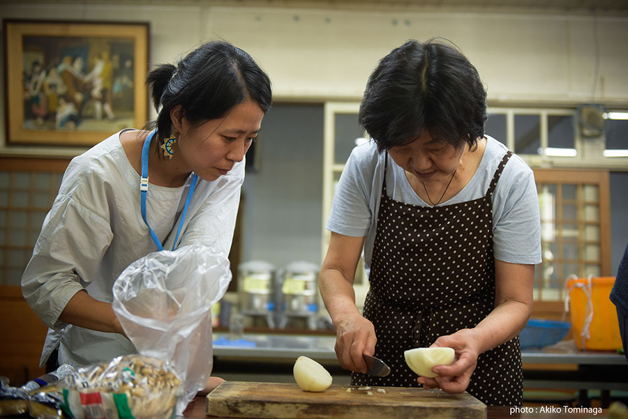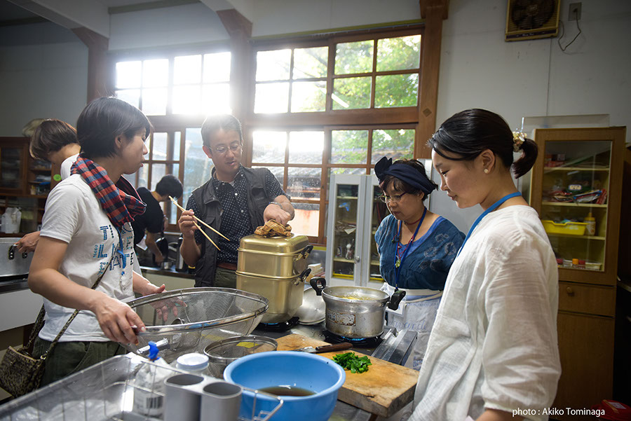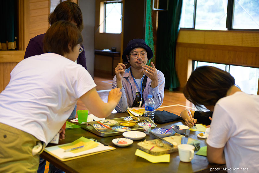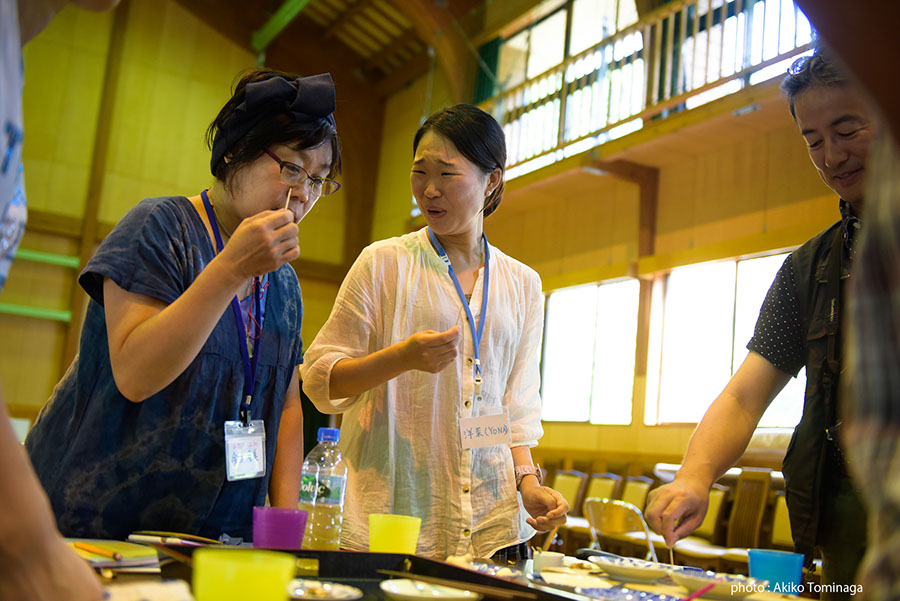 1日目のウーさんのワークショップは、ショウガとニンニクのテイスティングから開始。同じショウガでも、種類や加工の具合によって舌への刺激はまったく異なります。味わうことを根本的に問い直した後に、グループごとに料理を作る課題が出されました。味覚の共有は思いのほか難しそうでしたが、受講生たちは楽しそうに、クリエイティヴなメニューを次々と完成させました。