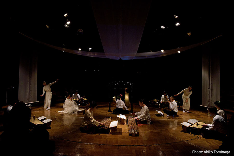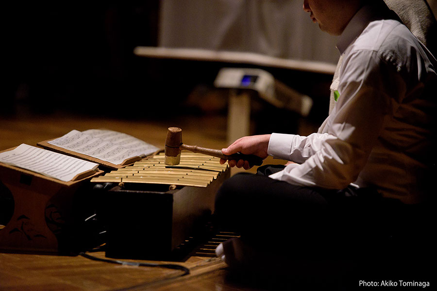 2017年12月15日(金)、現代舞楽「織・曼荼羅〜博多織の機音による」(作曲・構成|藤枝守)が終了しました。2回の公演あわせて200名ちかいお客様にお越しいただきました。