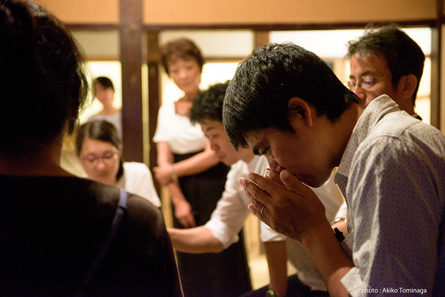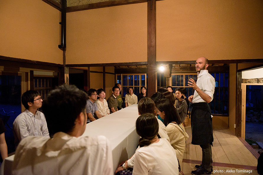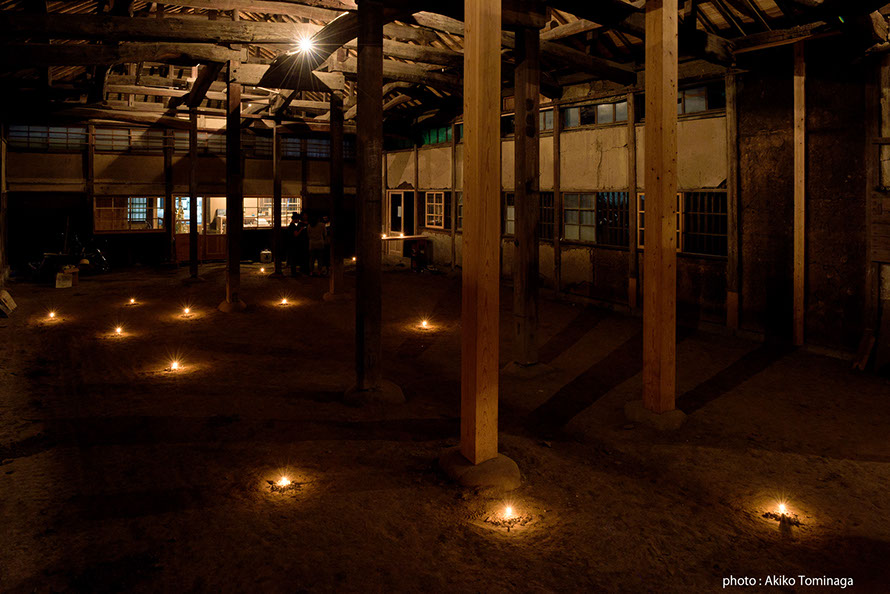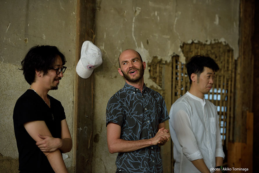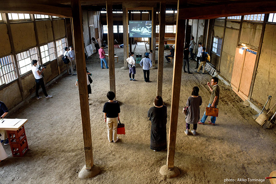アーティスト・ユニット「世界土協会」(南条 嘉毅、ジェームズ・ジャック、吉野 祥太郎)によるワークショップを旧八女郡役所で開催しました。土にまつわるストーリーに耳を傾けながら、ワイングラスや盃に注がれた土の見た目や匂い、手触りを参加者が次々に「テイスティング」していきました。参加者が持ち寄った土は、飼育しているヤギ牧場の土、長年手を入れているコンポストの土、住んでいるマンションの砂場の砂などさまざま。そしてその土に染み込んだ思いやストーリーがワークショップに集った人たちに共有されました。